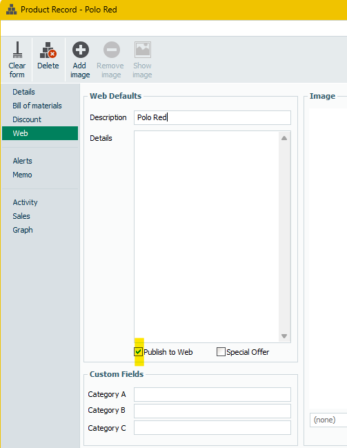 In order to update website products from Sage product must have their Publish to Web (PTW) checkbox ticked in the web tab of the Product Records as shown below.